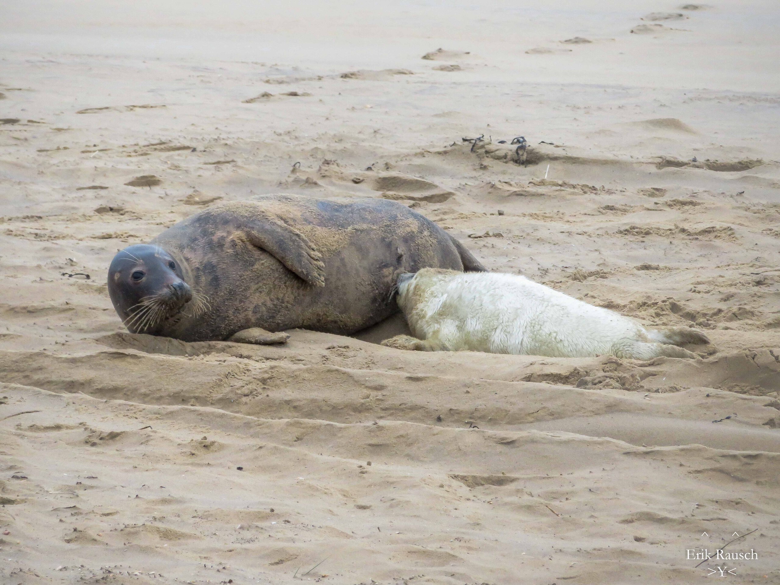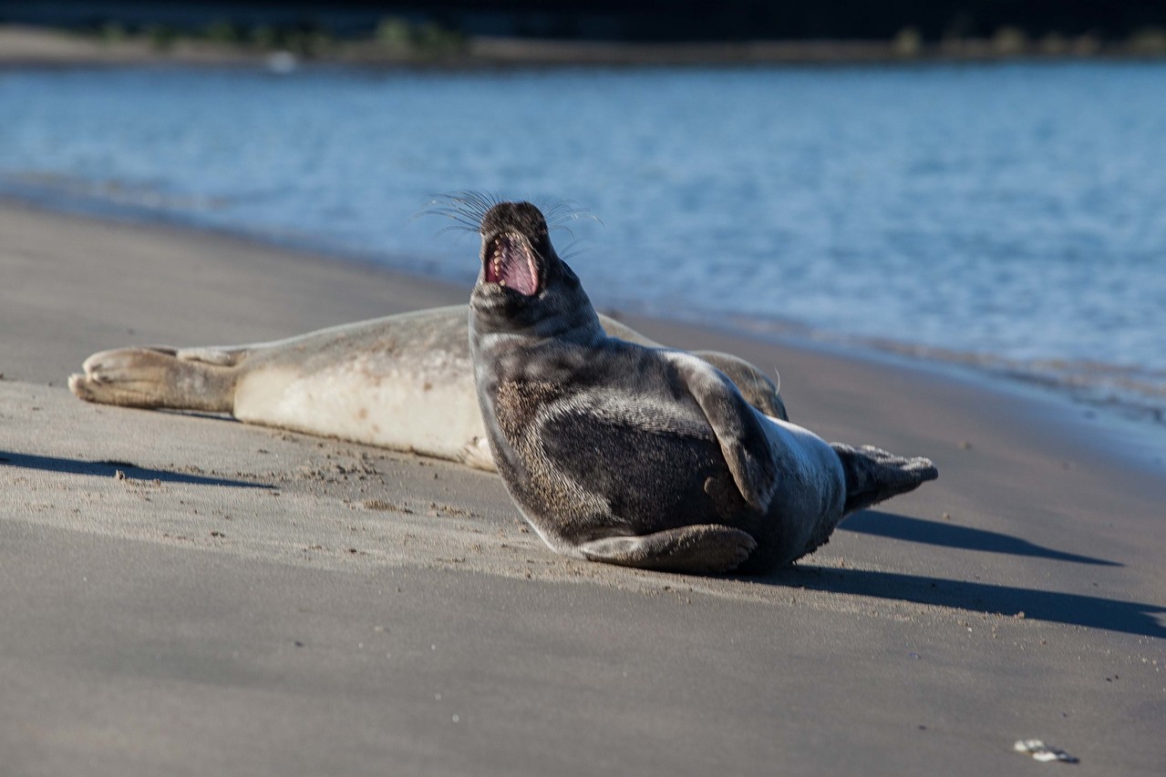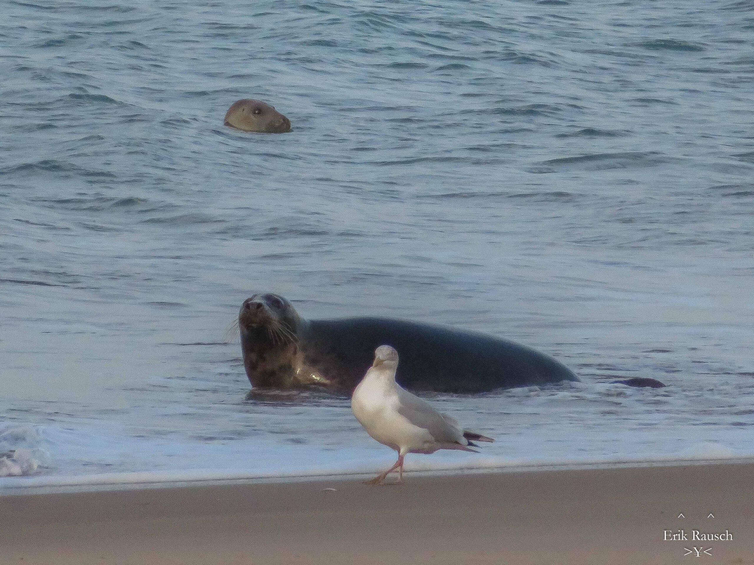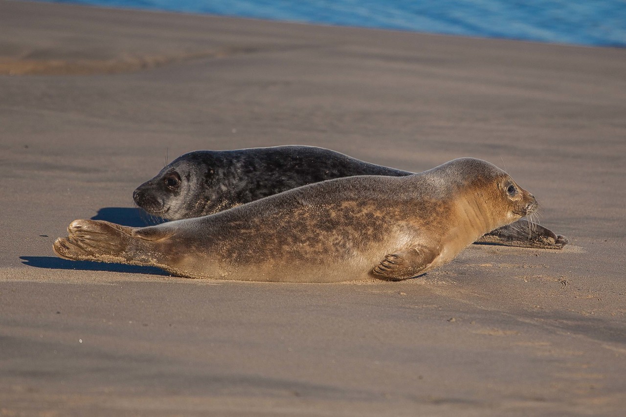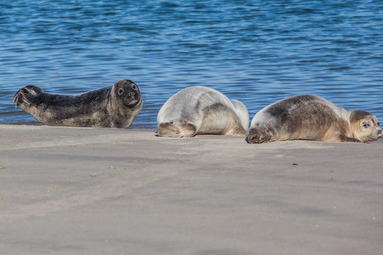 2019-2025Zeehonden op het Scheveningse strand, twee gewone en een grijze zeehond
