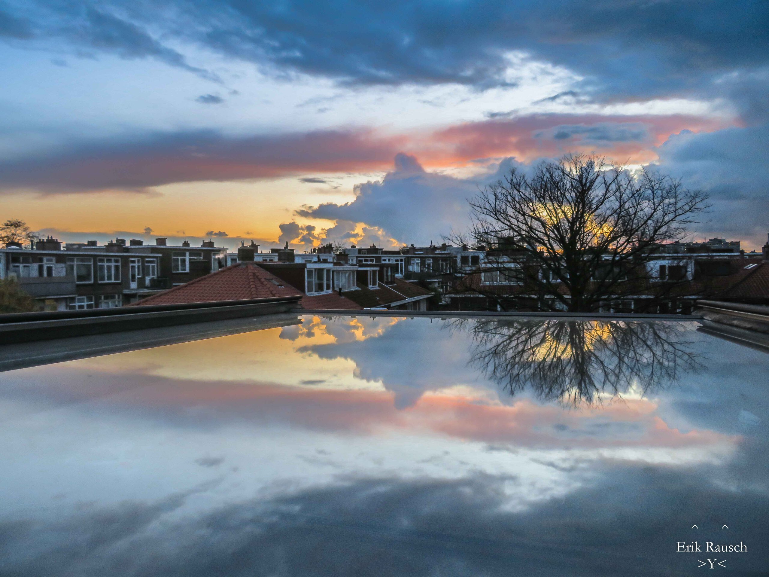 2020-2025Mooie Hollandse luchten, genomen in Den Haag. Gespiegeld in ons Velux zolderraam